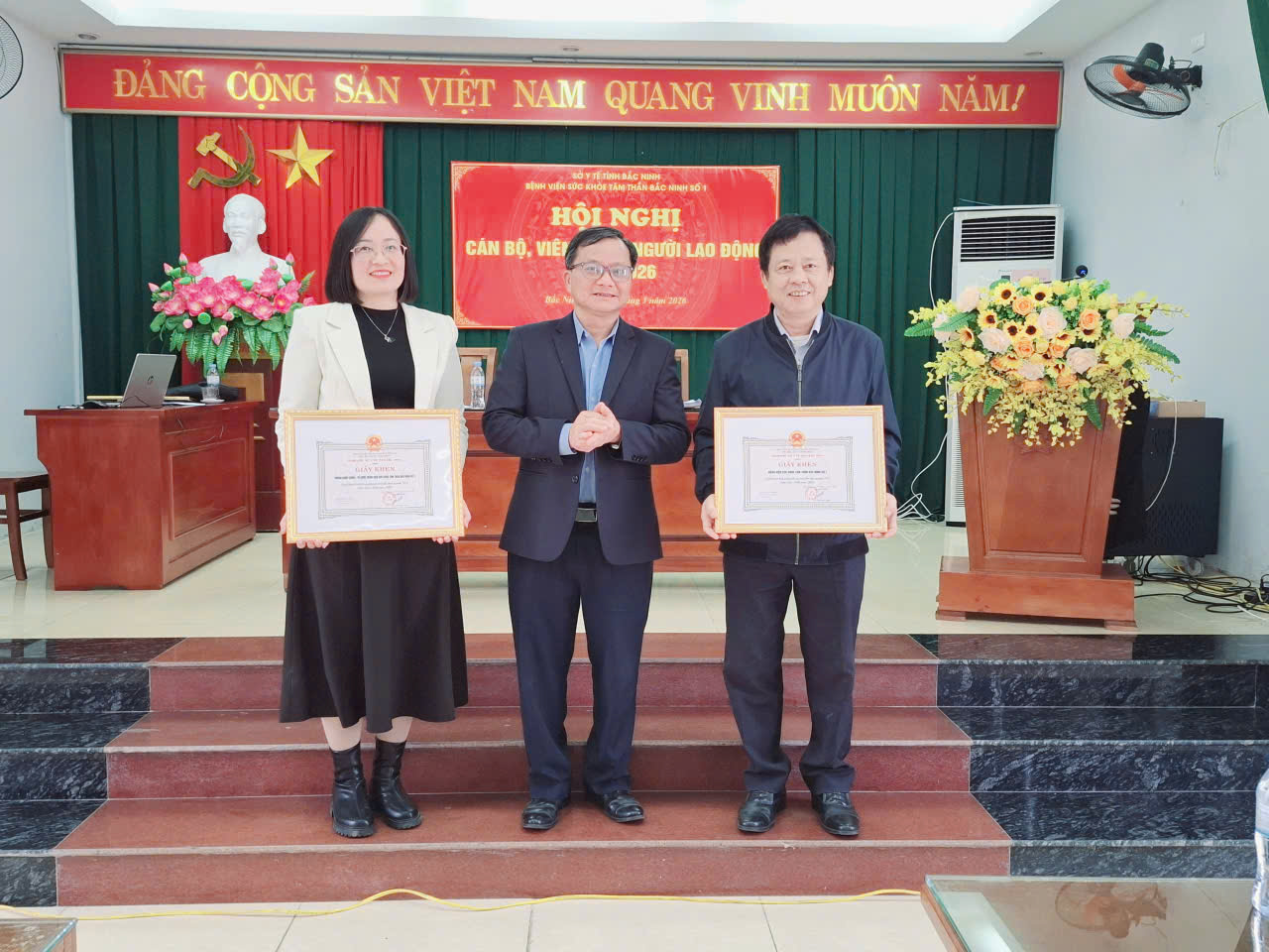 Chiều ngày 10/3/2026, Bệnh viện Sức khỏe Tâm thần Bắc Ninh số 1 tổ chức Hội nghị viên chức, người lao động năm 2026. Tham dự hội nghị có đồng chí Trịnh Xuân Tuấn – Bí thư Đảng ủy, Giám đốc Bệnh viện, các đồng chí trong Ban Giám đốc cùng toàn thể cán bộ, viên chức, người lao động trong đơn vị.