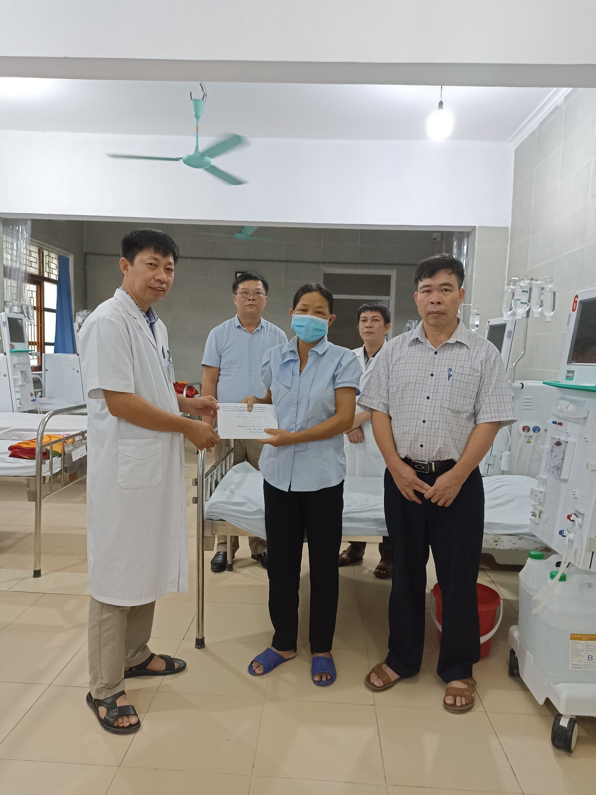 Ngày 22/9/2022 trước ngày chị đi Hà Nội để đặt “Cầu tự thân” về chạy thận nhân tạo, đại diện Trung tâm Y tế huyện Sơn Động, Bác sĩ CKII Đào Văn Hải – Giám đốc, trao tiền (10.020.000 VNĐ) ủng hộ chị Hoàng Thị Bé do lãnh đạo và nhân viên Trung tâm đóng góp.